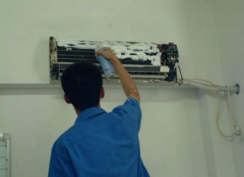 | 友好空调维修师傅给友好用户上门维修清洗空调。 |